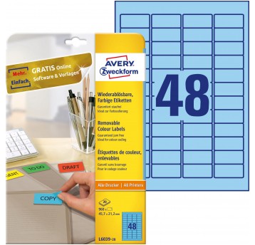 Etykiety usuwalne kolorowe Avery Zweckform, A4, 20