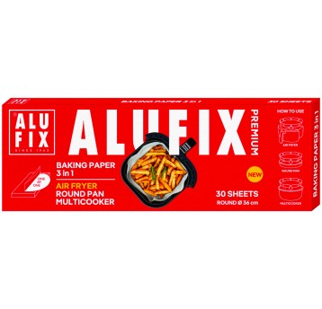 Produkty Alufix to praktyczne akcesoria przeznaczone do pakowania, przechowywania oraz zabezpieczania żywności w kuchni. W tej kategorii znajdują się między innymi folie aluminiowe, folie spożywcze, papiery do pieczenia, worki do przechowywania żywności oraz inne akcesoria kuchenne, które ułatwiają codzienne przygotowywanie i przechowywanie posiłków.