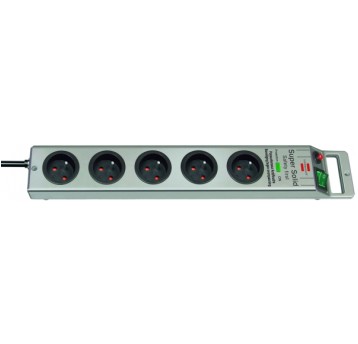 LISTWA PRZECIWPRZEPIĘCIOWA BRENNENSTUHL SUPERSOLID, 5 GNIAZD, 2,5M, 13500A, SREBRNA
