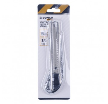 NÓŻ PAKOWY DONAU SAFETY, WYMIENNE OSTRZE, METALOWY, BLISTER, SREBRNY