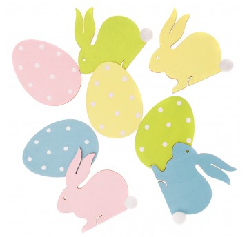 DREWNIANE KRÓLICZKI I JAJKA 4 CM, 8 SZT. PASTELOWE