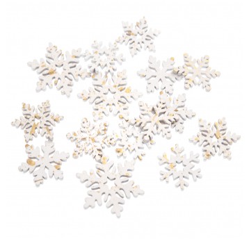 DREWNIANE ŚNIEŻYNKI, 15 SZT., BIAŁE, ZŁOCONE