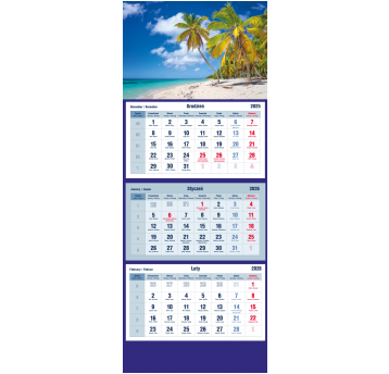 KALENDARZ TRÓJDZIELNY 2026 PLAŻA PALMY T-105T-02