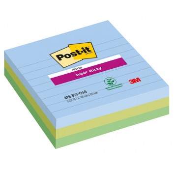KARTECZKI SAMOPRZYLEPNE POST-IT® SUPER STICKY XL, OASIS, W LINIĘ, 101X101MM, 3X70 KART.