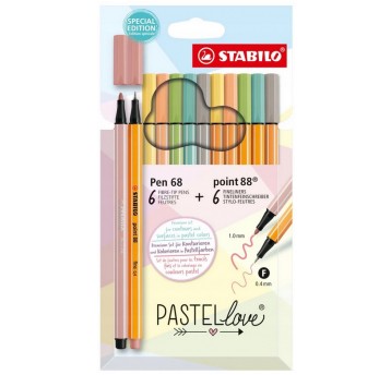 ZESTAW CIENKOPIS STABILO POINT 88/FLAMASTER PEN 68 PASTELLOVE ETUI KARTONOWE 12 SZT.