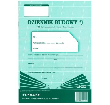 DZIENNIK BUDOWY A4 20 TYPOGRAF