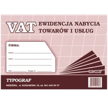 EWIDENCJA VAT NABYCIA TOWARÓW I USŁUG A5 48007