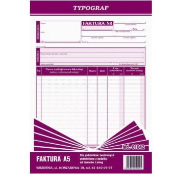 FAKTURA A5 TYPOGRAF PION DLA ZWOLNIONYCH Z PODATKU