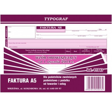 FAKTURA A5 TYPOGRAF POZIOM DLA ZWOLNIONYCH 01043
