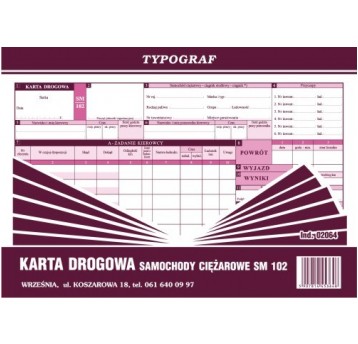 KARTA DROGOWA A4 SM 102 TYPOGRAF SAMOCHÓD CIĘŻ.