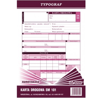 KARTA DROGOWA A5 SM 101 NUMEROWANA 02040