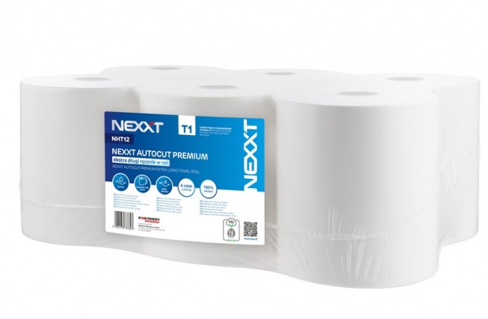 Ręczniki Autocut Nexxt T1 to wydajne i chłonne rozwiązanie do systemów dozujących. Dzięki jednowarstwowej strukturze i długości rolki aż 270 metrów, gwarantują długotrwałe użytkowanie i oszczędność. Biała celuloza 34g/m² zapewnia dobrą chłonność i delikatność dla skóry. Opakowanie zawiera 6 rolek – gotowe na intensywne użytkowanie!