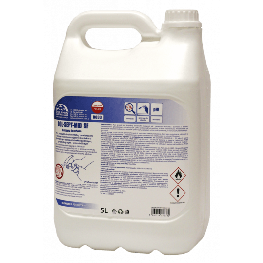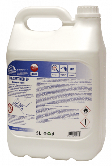 Płyn, produkt do dezynfekcji powierzchni mających jak i niemających kontaktu z żywnością o działaniu bakteriobójczym, grzybobójczym i wirusobójczym Zalety: Pozwolenie na obrót: 3741/TP/2021 • silne i natychmiastowe działanie biobójcze • pełna skuteczność wirusobójcza – w tym koronawirusy • bezpieczny dla wszelkich dezynfekowanych powierzchni • skuteczna ochrona dzięki zawartości 80% alkoholu Zastosowanie: Płyn, produkt do dezynfekcji powierzchni mających jak i niemających kontaktu z żywnością o działaniu bakteriobójczym, grzybobójczym, wirusobójczym (pełna skuteczność wirusobójcza, w tym koronawirusy). Produkt może być stosowany w obszarze medycznym, przemyśle spożywczym, zakładach użyteczności publicznej, w warunkach przemysłowych i domowych. Sposób użycia: Czyste i suche powierzchnie pokryć produktem metodą natryskową, bez jego rozcieńczania, odczekać na odparowanie, nie spłukiwać wodą. Cała dezynfekowana powierzchnia musi być wilgotna przez co najmniej 30 sekund. Przebadany pod względem działania i stosowania: PN-EN 14476+A2:2019-08/PN-EN 1500:2013-07 / PN-EN 12791:2016-04 / PN-EN 13727+A2:2015-12 / PN-EN 13624:2013 / PN-EN 13697:2015 06E / PN-EN 14348:2006