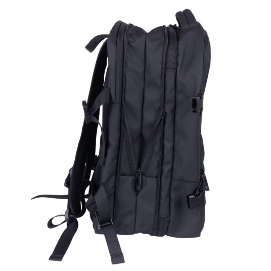 wszechstronny plecak mieszczący laptopa 17'' idealnie sprawdzi się podczas dłuższych wyjazdów wykonany z nieprzemakalnego materiału film coating, z podszewką 210D wyposażony w gniazdo USB wraz z kablem do podłączenia powerbanku posiada ukrytą kieszeń chroniącą przed kradzieżą, co zapewnia bezpieczeństwo i wygodę w każdej sytuacji każdy plecak zapakowany jest indywidualnie w karton pojemność: 32 l wymiary plecaka: 30x24x44 cm wymiary kieszeni na laptopa: 29x4x36 cm materiał: film coating, nieprzemakalny gwarancja: 5 lat kolor: czarny