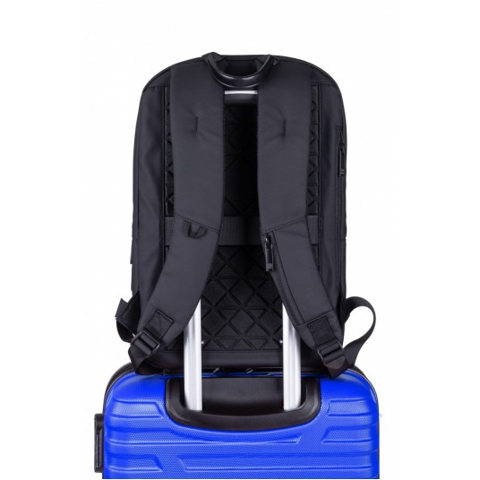kompaktowy plecak, który pomieści laptopa 13,3" idealnie sprawdzi się do pracy, na uczelnię i krótkie wyjazdy służbowe wykonany z nieprzemakalnego materiału film coating 900D, z podszewką 210D wyposażony w kieszeń na laptopa i tablet oraz ukrytą kieszeń chroniącą przed kradzieżą, co zapewnia bezpieczeństwo i wygodę w każdej sytuacji każdy plecak zapakowany jest indywidualnie w karton pojemność: 9 l wymiary plecaka: 29x7x43 cm wymiary kieszeni na laptopa: 28x3x33 cm wymiary kieszeni na tablet: 22x24,5 cm materiał: film coating 900D, nieprzemakalny gwarancja: 5 lat kolor: czarny