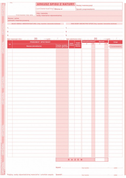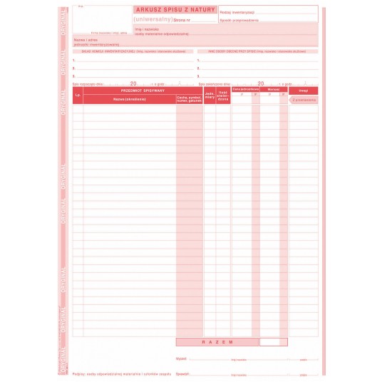 Rodzaj papieru: samokopiujący, oprawa: bloczek 48 kartek, druk: jednostronny (oryginał + kopia)