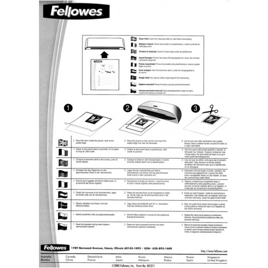 Regularne czyszczenie pozostałości kleju z folii laminacyjnych i konserwacja mechanizmu grzejnego znacząco wydłuża żywotność laminatora. Arkusze czyszczące (carriery) od Fellowes w rozmiarze A4 pomagają utrzymać urządzenie w dobrej kondycji. W opakowaniu 10 sztuk.