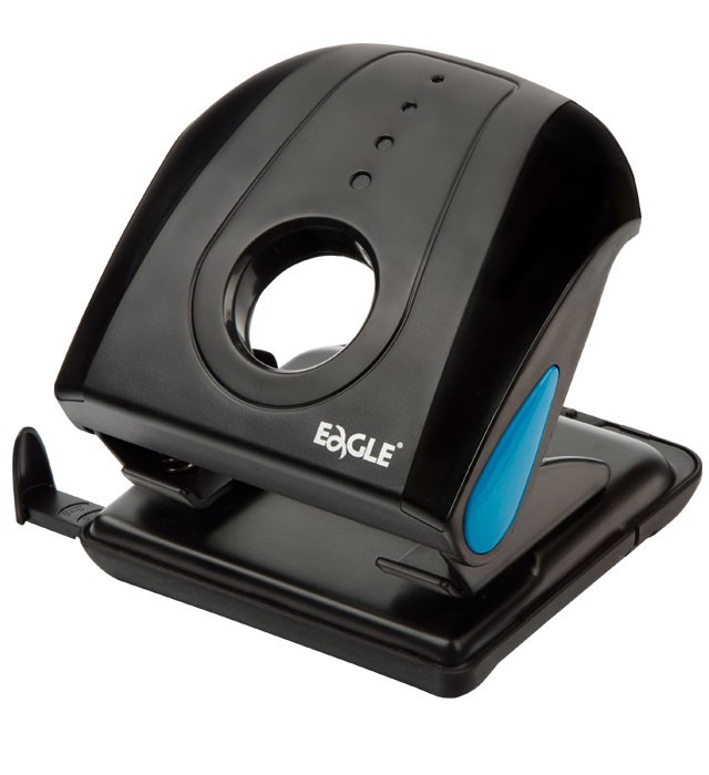 – czarne dziurkacze z kolorowymi elementami, które nie dominują biurka, ale dyskretnie dodają mu charakteru