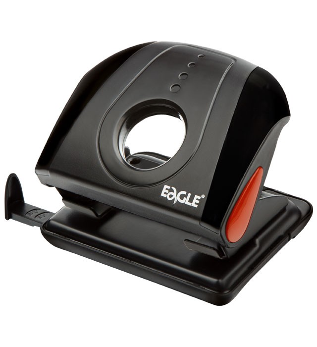 – czarne dziurkacze z kolorowymi elementami, które nie dominują biurka, ale dyskretnie dodają mu charakteru