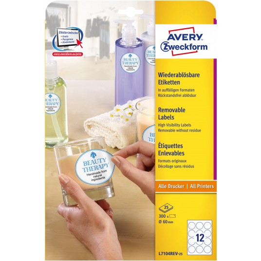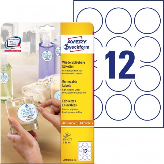 Etykiety okrągłe usuwalne Avery Zweckform, A4, 25