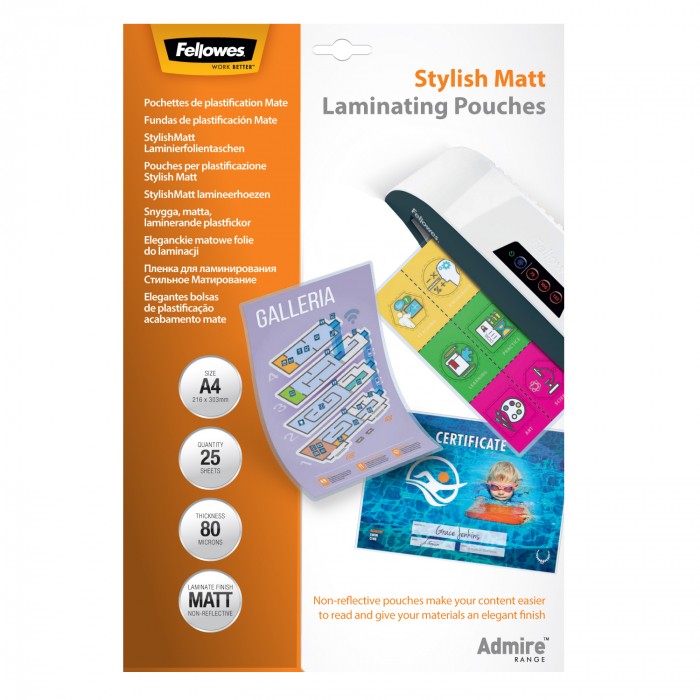 Folie do laminacji zapewniają doskonałą ochronę dokumentów przed wilgocią, kurzem i zabrudzeniem. Zabezpieczają je przed ewentualną interwencją w ich treść, zapewniając doskonałą ochronę i wygląd. Laminowanie fotografii poprawia ich kolorystykę oraz zabezpiecza przed wyblaknięciem w miarę upływu czasu. Folie matowe od Fellowes o grubości 80 mikronów są przeznaczone do laminacji dyplomów, dokumentów, fotografii, rysunków, etc. rozmiarze A4. W opakowaniu 25 sztuk.