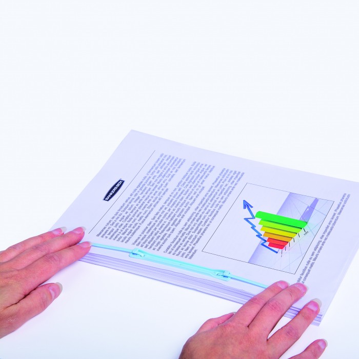 Klips archiwizacyjny Fellowes Pro Clip w kolorze jasnoniebieskim. Konstrukcja 2-częściowa, umożliwiająca spięcie pliku dokumentów i archiwizację w pudełkach na akta. Pozwala na swobodne korzystanie z dokumentów. Wykonany z polipropylenu w 100% z recyklingu (nadaje się do ponownego przetworzenia). Długość wąsów archiwizacyjnych (100 mm) umożliwia archiwizację obszernego pliku dokumentów. Opakowanie zawiera 20 sztuk klipsów.