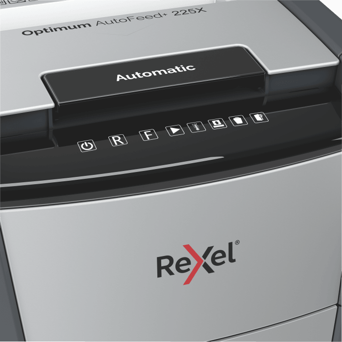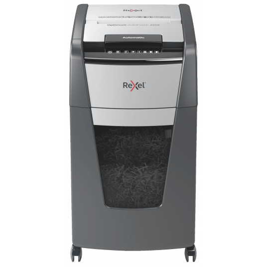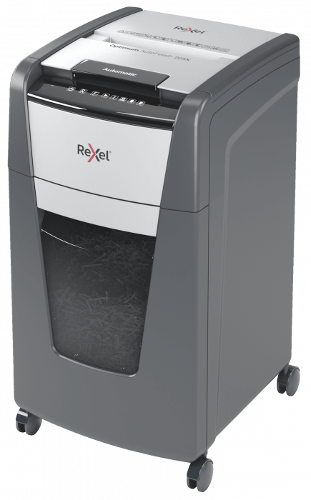 Niszczarka automatyczna do papieru Optimum AutoFeed+ 225X jednorazowo niszczy automatycznie do 225 kartek A4 (80 gsm), tnąc arkusze na konfetti (o wymiarach 4 x 26 mm), co zapewnia poziom bezpieczeństwa P-4. Wyposażona jest w automatyczny podajnik i 60-litrowy pojemnik na ścinki, co sprawia, że idealnie nadaje się do użytku biurowego. Nie wymaga ręcznego podawania papieru ani wcześniejszego usuwania zszywek i spinaczy - ta automatyczna niszczarka całą pracę wykona za Ciebie.