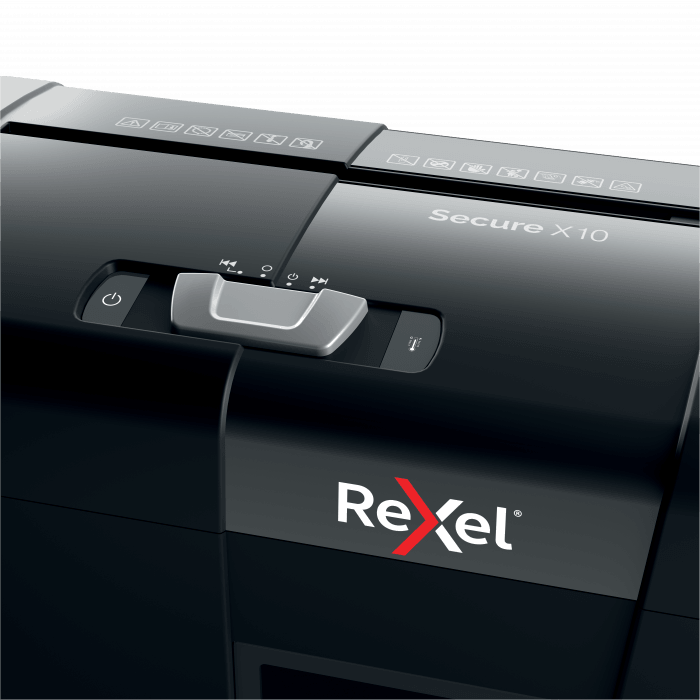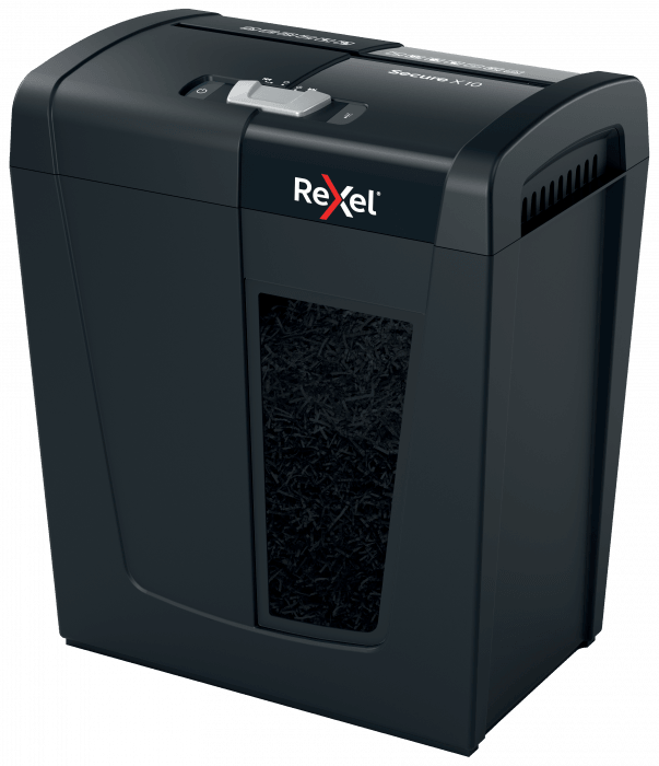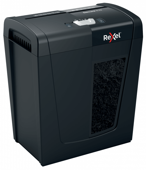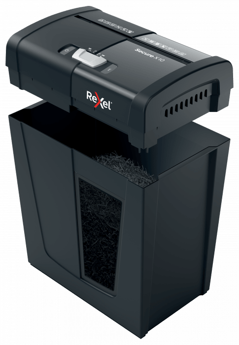 Linia niszczarek Secure firmy Rexel doskonale nadaje się do niszczenia osobistych dokumentów i poufnych informacji w domu. Model Secure X10 niszczy jednocześnie - po ręcznym podaniu przez szczelinę podajnika - do 10 arkuszy papieru A4 (80 gsm), tnąc je na konfetti o wymiarach 4 x 40 mm, co zapewnia poziom bezpieczeństwa P-4. Ta niewielka, kompaktowa niszczarka idealnie nadaje się do użytku domowego i w domowym biurze; znakomicie się także sprawdzi jako niszczarka osobista w biurach, mieszcząc się wygodnie pod biurkiem. 18-litrowy pojemnik umożliwia rzadsze opróżnianie ze ścinków. Niszczarka przeznaczona jest do sporadycznego lub umiarkowanego użytkowania.