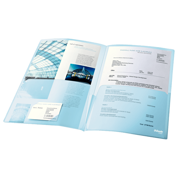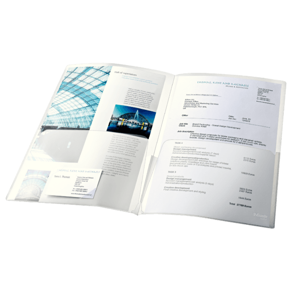 Wysokiej jakości, super mocne podwójne ofertówki do częstego używania. Dostępne w formacie podwójnego A4. Mogą być otwierane na dwie strony: do wygodnego przechowywania dokumentów lub przygotowania prezentacji itp. 5 sztuk w opakowaniu.