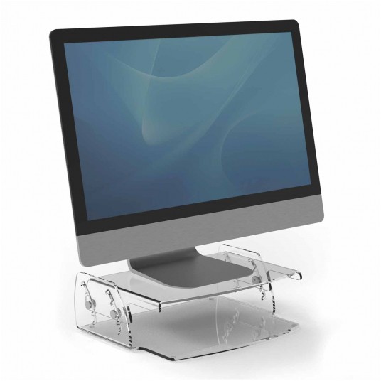 Podstawa pozwala ustawić monitor na wysokości wzroku, pomaga zapobiegać bólom mięśni pleców i karku. Minimalistyczny design i najwyższej jakości przezroczysty akryl z łatwością wkomponowuje się w dowolną przestrzeń biurową. Możliwość regulacji wysokości podstawy - 5 pozycji (70 mm, 85 mm, 100 mm, 115 mm, 130 mm). Maksymalne obciążenie 10 kg. Wymiary produktu 105 x 320 x 256 mm. Wymiary platformy 310 x 205 mm. Posiada certyfikat FIRA. Gwarancja 2 lata.