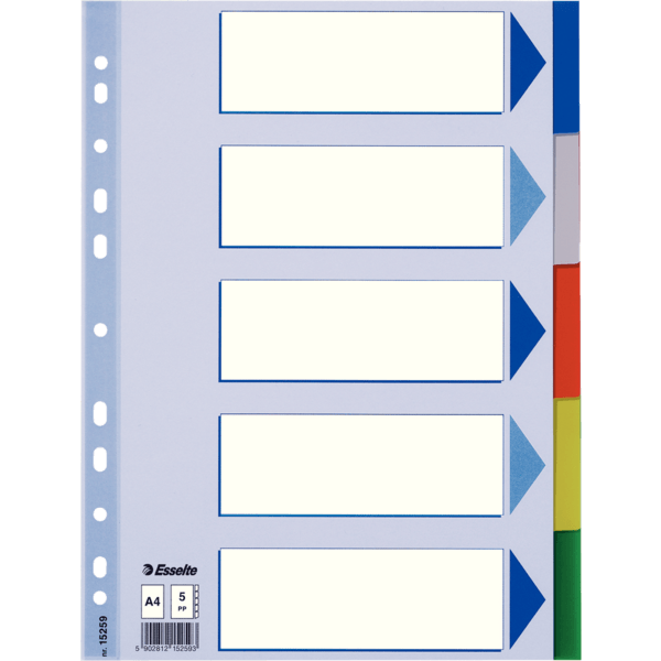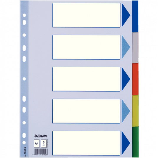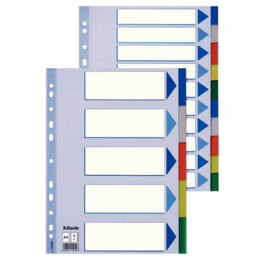 PRZEKŁADKI PLASTIKOWE Z PP A4 ESSELTE, 5 KART