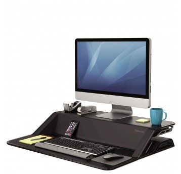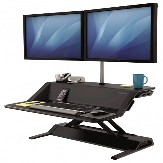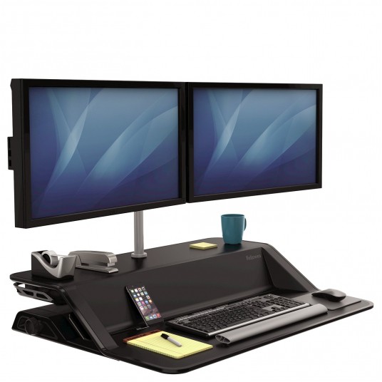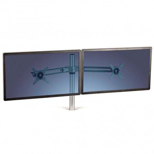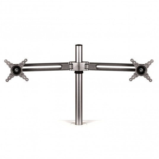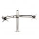 Ramię umożliwia umieszczenie dwóch monitorów na odpowiedniej wysokości. Posiada regulację wysokości w zakresie do 40 cm oraz rozstawu. Podczas podniesienia/opuszczenia stanowiska Sit-Stand monitory pozostają w tej samej pozycji. Każde z ramion utrzymuje monitor do 27” o wadze do 5,9 kg. System montażu VESA. Gwarancja 3 lata.