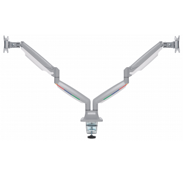 - uchwyt do monitorów pozwala na ustawienie dwóch monitorów na odpowiedniej wysokości, zwiększając wydajność i komfort pracy oraz zmniejszając ryzyko bólu karku i szyi