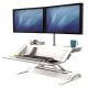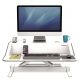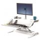 Zachęca użytkownika do ograniczenia pracy w trybie siedzącym i ułatwia zmianę pozycji w czasie pracy za biurkiem. Technologia przeciwwagi i ergonomiczne uchwyty sprawiają, że dostosowywanie wysokości jest proste i szybkie. Z 22 ustawieniami wysokości oraz możliwością ustawienia w pozycji równoległej do blatu - daje poczucie stabilności niezależnie od ustawienia. System organizacji kabli i gniazdo na urządzenie ładujące zapewniają wygodne przeglądanie tabletu lub smartfona na każdej wysokości. Stanowiska sprzedawane są w postaci gotowej do użytku – nie wymagają jakiegokolwiek montażu – wystarczy wyjąć je z opakowania. Dwie powierzchnie do pracy oferują dużą przestrzeń użytkową na wszystkie niezbędne akcesoria. Produkt nie zawiera ramienia na monitor - do dokupienia osobno. 5 lat gwarancji.