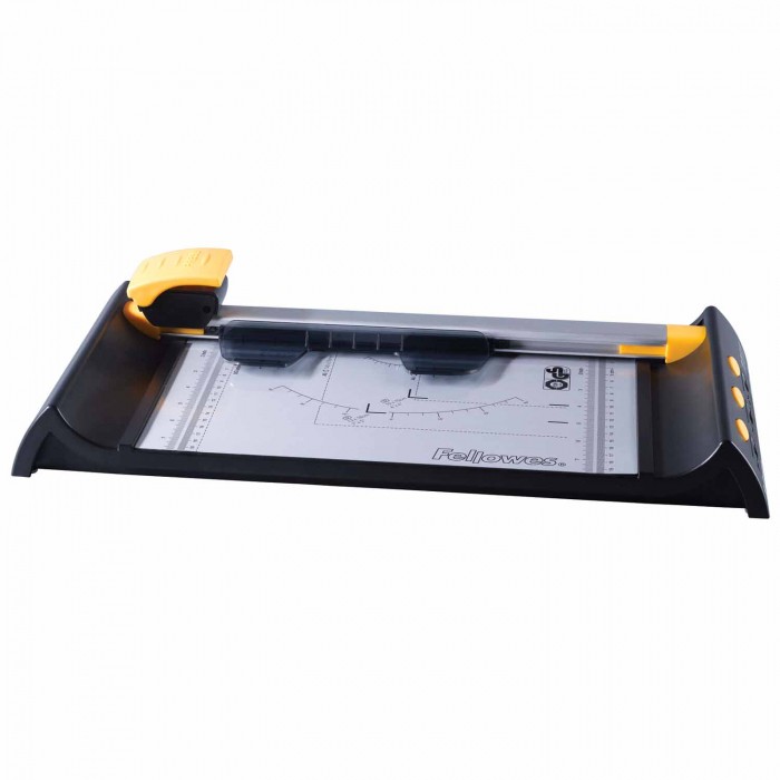 Fellowes Neutron A4 Plus o trymer przeznaczony do okazjonalnego użytku w domu lub małym biurze. Umożliwia jednorazowe cięcie do 10 arkuszy (80 g/m2) do rozmiaru A4, w tym zdjęć, kartonu i plastikowych okładek do bindowania. Wyposażony w 4 unikalne kasety SafeCut™ z ostrzami ze stali nierdzewnej do cięcia prostego, falowanego, perforacji oraz zaginania (ostrze pozostaje przez cały czas w osłonie kasety i wysuwane jest jedynie w momencie cięcia). Docisk papieru zapobiega przesuwaniu się dokumentu podczas cięcia oraz miarki cięcia różnych formatów i pod różnymi kątami zapewniają precyzję cięcia i znacząco usprawniają użytkowanie. Wyposażony w specjalne wgłębienia w podstawie ułatwiające przenoszenie oraz aluminiową podstawę z antypoślizgowymi nóżkami. Przyjazna dla użytkownika konstrukcja. Produkt certyfikowany przez TÜV & GS. Trymer objęty jest 2-letnią gwarancją producenta.