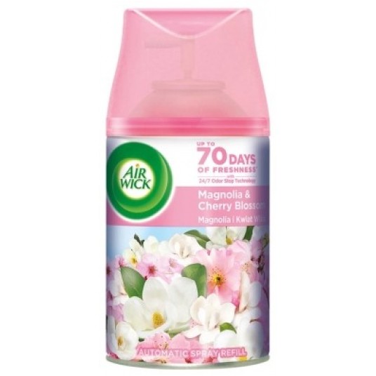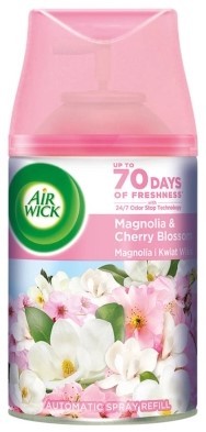 Odświeżacz Air Wick z olejkami eterycznymi dostarczy Ci wyjątkowo naturalnych doznań. Wkład do automatycznego odświeżacza Air Wick Freshmatic o słodkim, świeżym zapachu magnolii i kwiatu wiśni. Wkład do automatycznego odświeżacza Air Wick Freshmatic uwalnia zapach na całe pomieszczenie, sprawiając, że zawsze towarzyszy mu świeży i przyjemny zapach. Wystarczy, że włożysz go do urządzenia, wybierzesz odpowiednią intensywność zapachu (jedną z trzech), następnie ustawisz Air Wick Freshmatic w dowolnym miejscu i możesz cieszyć się dyskretnym aromatem nawet przez 70 dni.