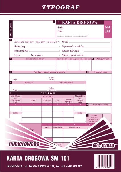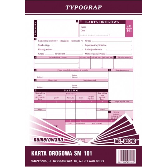 KARTA DROGOWA A5 SM 101 NUMEROWANA 02040