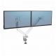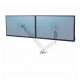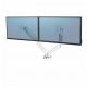 W pełni niezależne, regulowane ramię na 2 monitory Platinum Series™ (w układzie poziomym) w kolorze białym, z technologią sprężyny gazowej, która umożliwia łatwe dostosowanie monitora do pracy oraz współdzielenie ekranu: – pozwala na zwiększenie ilości wolnego miejsca na biurku, przeciwdziałając zmęczeniu oczu, szyi i ramion, – umożliwia łatwą regulację za sprężyny gazowej, dzięki której szybko i precyzyjnie zmienisz położenie monitora, z możliwość obrotu ramienia o 360° i nachylenia ekranu monitora od -45° do 45°, – wyposażone w 2 porty USB typu A, umożliwiające podłączenie ulubionych urządzeń, – łatwe w montażu za pomocą zacisku do krawędzi biurka lub oczka (przelotki) w blacie, – zapewnia zgodność ze standardem VESA 75×75 i 100×100. Produkt objęty jest 3-letnią (ograniczoną) gwarancją. Produkt przetestowany przez FIRA International Ltd. pod kątem zgodności z wymogami ergonomii określonymi w europejskim prawodawstwie dotyczącym zdrowia i bezpieczeństwa pracy biurowej: EN ISO 9241-5.
