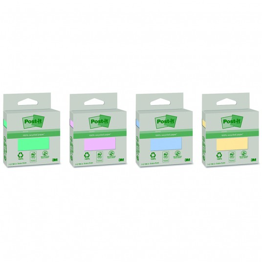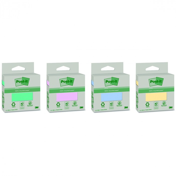 Karteczki samoprzylepne Post-it® Recycled Color wykonane są w 100% z papieru pochodzącego z recyklingu. Certyfikat PEFC Recycled gwarantuje, że do ich produkcji wykorzystano materiał z recyklingu, a surowiec pochodził z certyfikowanych, roślinnych i odpowiedzialnie zarządzanych lasów. Wysoką przyczepność karteczek zapewnia specjalny klej wyprodukowany w 60% z surowców roślinnych, wytworzony z corocznie odrastających roślin. Karteczki dostępne są w 4 kolorach, aby pomóc Tobie i Twoim współpracownikom łatwiej zapamiętać ważne informacje. Samoprzylepne notatki to szybki, łatwy i skuteczny sposób przekazywania informacji.