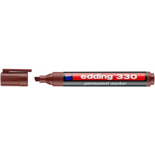 Marker permanentny do znakowania większości materiałów, np. papieru, kartonu, metalu, szkła i plastiku Ścięta końcówka o szerokości pisania 1-5 mm Wodoodporny i odporny na ścieranie na niemal każdej powierzchni Dostępny w 10 kolorach Do wielokrotnego napełniania tuszem uzupełniającym edding MTK 25 w kolorach czarnym, czerwonym, niebieskim i zielonym Bezwonny tusz bez dodatku toulenu/ksylenu Kolor: brązowy