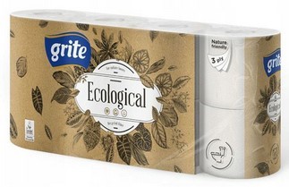 Trzywarstwowy papier toaletowy, produkowany z materiałów pochodzących z recyklingu.