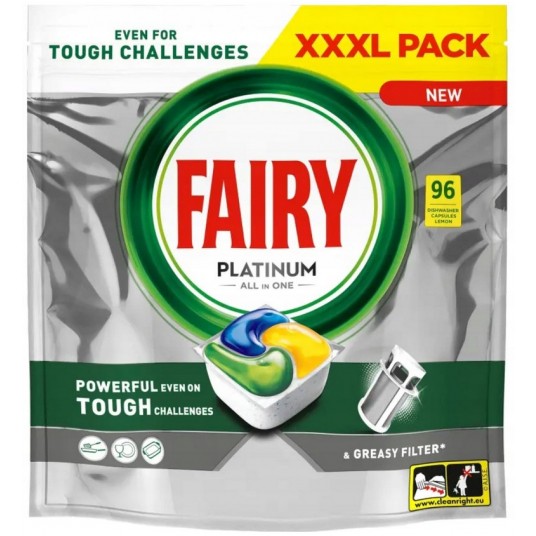 Kapsułki do zmywarki Fairy Platinum usuwają nawet trudne zabrudzenia już przy 1. myciu.