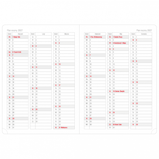 • Układ kalendarium: 1 dzień na stronie (dzienny)