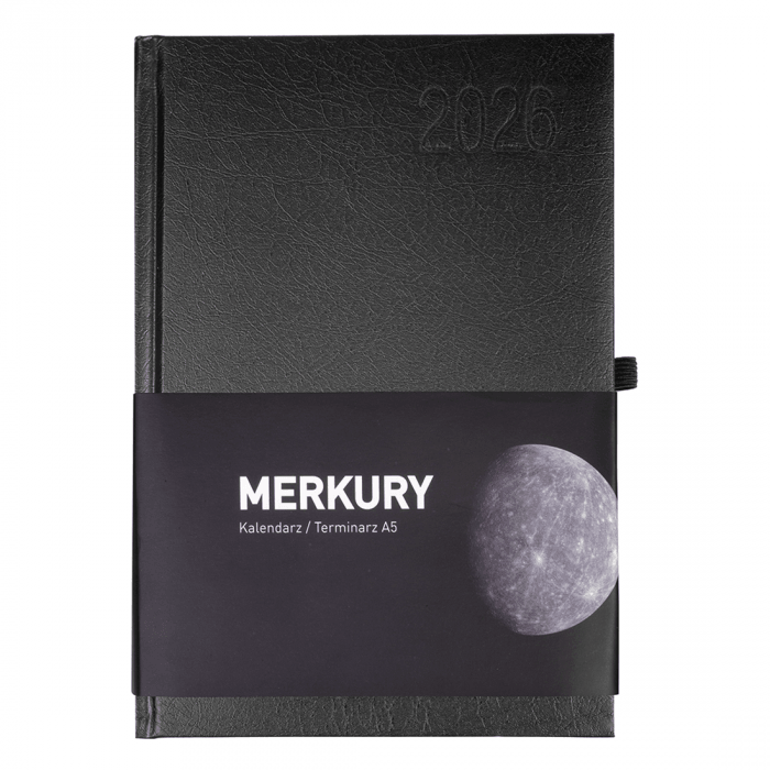 Kalendarz O.Diary Merkury A5 w ponadczasowej, czarnej oprawie to propozycja dla osób ceniących minimalizm, funkcjonalność i elegancję. Poręczny format A5 sprawia, że kalendarz jest wygodny do noszenia w torbie lub teczce, a układ dzienny (1 dzień na stronie) zapewnia dużo miejsca na notatki i planowanie. Solidna oprawa szyta gwarantuje trwałość przez cały rok 2026.