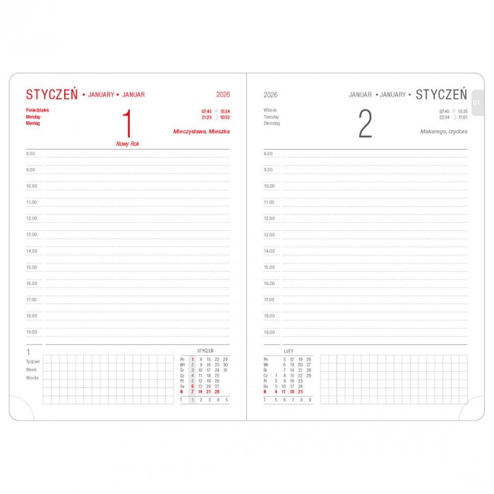 • Układ kalendarium: 1 dzień na stronie (dzienny)