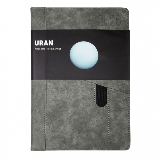 Kalendarz O.Diary Uran B5 w eleganckiej czarnej oprawie to idealny wybór dla osób, które potrzebują więcej miejsca na planowanie i nowoczesnych udogodnień. Format B5 daje przestrzeń do notatek, a układ dzienny (sobota i niedziela na jednej stronie) pozwala na wygodną organizację tygodnia. W kalendarzu znajdziesz zaznaczone święta, imieniny oraz wschody i zachody słońca i księżyca, co sprawia, że jest niezwykle praktyczny. Dodatkowe elementy, takie jak tasiemkowa zakładka, perforowane narożniki czy kieszeń na smartfon i długopis, czynią go wyjątkowo funkcjonalnym narzędziem na rok 2026.