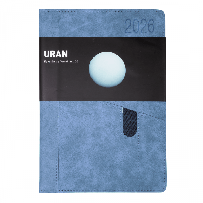 Kalendarz O.Diary Uran B5 w eleganckiej niebieskiej oprawie to idealny wybór dla osób, które cenią funkcjonalność i wygodne planowanie tygodnia. Duży format B5 oferuje więcej przestrzeni do notowania, a układ tygodniowy – 1 tydzień na stronie – umożliwia szybki wgląd w cały plan. Zaznaczone święta, imieniny oraz wschody i zachody słońca i księżyca sprawiają, że kalendarz jest praktycznym narzędziem na każdy dzień roku 2026. Dodatkowe atuty, takie jak perforowane narożniki, zakładka tasiemkowa, kieszeń na smartfon i długopis czy registry drukowane, gwarantują maksymalny komfort i elegancję.