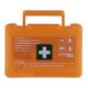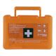 apteczka przeznaczona do samochodów osobowych i ciężarowych w pudełku z tworzywa sztucznego (polistyren) z rączką do wygodnego przenoszenia wyroby medyczne oznakowane znakiem CE apteczka spełnia wymagania norm Unii Europejskiej termin ważności produktów sterylnych wynosi 5 lat wyposażenie (DIN 13164) zawiera: - plaster na szpulce 5m x 2,5cm – 1 szt. - zestaw plastrów - 14 szt. - bandaż elastyczny 4m x 6cm – 2 szt. - bandaż elastyczny 4m x 8cm – 3 szt. - rękawice winylowe - 4 szt. (2 pary) - chusta opatrunkowa 60cm x 80cm – 1 szt. - bandaż z kompresem (opatrunek indywidualny) 6cm x 8cm– 1 szt. - bandaż z kompresem (opatrunek indywidualny) 8cm x 10cm – 2 szt. - bandaż z kompresem (opatrunek indywidualny) 10cm x 12cm – 1 szt. - kompres na rany 10cm x 10cm – 6 szt./3 opak. - chusta trójkątna 96cm x 96cm x 136cm - 1szt. - koc termiczny (ratunkowy) – 1 szt. - nożyczki – 1 szt. - chusteczki nasączone – 2 szt. - maska medyczna – 2 szt. - instrukcja udzielania pierwszej pomocy – 1 szt. wymiary: 260mm x 170mm x 80mm kolor: pomarańczowy