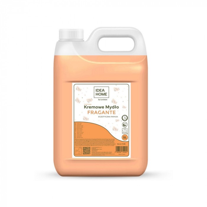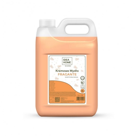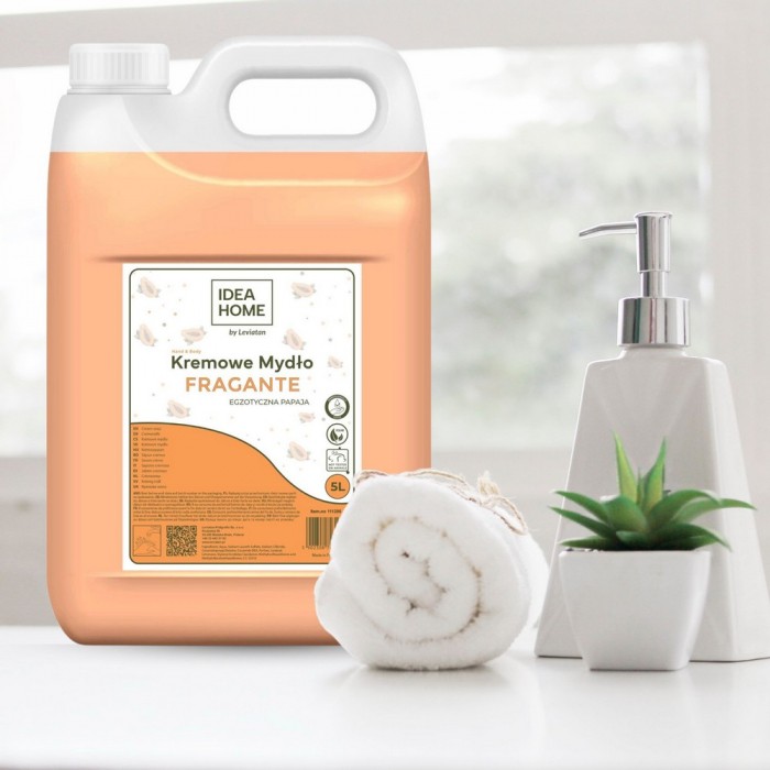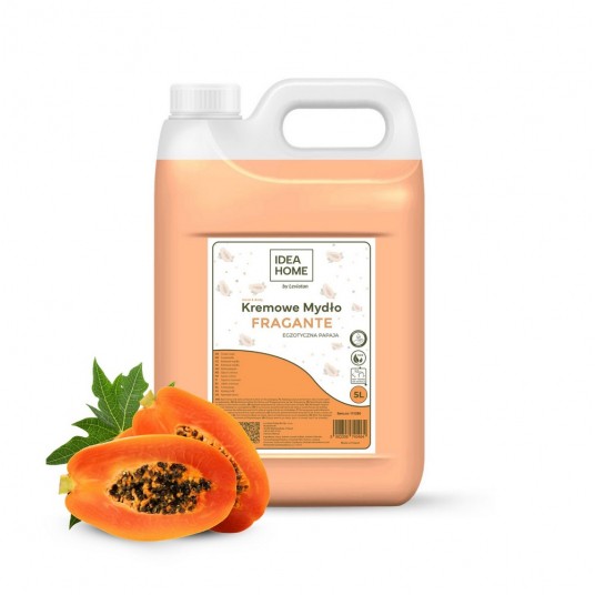 IH Fragante Egzotyczna Papaja to wysokiej jakości, kremowe mydło w płynie 5L przeznaczone do codziennej higieny dłoni. Duże, ekonomiczne opakowanie „zapas” sprawdza się idealnie do uzupełniania dozowników w łazienkach publicznych i firmowych, a także w domach i gastronomii. Aksamitna konsystencja tworzy gęstą pianę, a łagodne środki myjące z dodatkiem składników pielęgnujących skutecznie oczyszczają, pozostawiając skórę miękką i świeżą. Tropikalny, soczysty aromat papai nadaje kąpieli i myciu dłoni przyjemny, energetyzujący charakter.