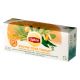 Lipton herbatka ziołowa Zdrowe Gardło to pełen smaku i aromatu napar, który pomoże ukoić nadwyrężone gardło i struny głosowe. Połączenie eukaliptusa, szałwii i tymianku zwiększą odporność organizmu w jesienno-zimowym sezonie. Łagodzący stany zapalne eukaliptus i lukrecja, zmniejszająca podrażnienia błon śluzowych szałwia, oraz wykazujący właściwości rozkurczowe tymianek pomogą zadbać o twoje gardło i struny głosowe. Zawarte w formule rośliny lecznicze wykazują działanie nawilżające oraz przeciwzapalne. Zmniejsza podrażnienia błon śluzowych. Herbatka ziołowa Lipton Zdrowe Gardło działa delikatnie przeciwbólowo. Stanowi doskonałe urozmaicenie codziennej diety. Skład: eukaliptus (32 %), szałwia (30 %), trawa cytrynowa, korzeń lukrecji, tymianek (9 %), naturalny aromat cytrynowy z innymi naturalnymi aromatami, skórka z cytryny (2 %) Opakowanie: 20 torebek.
